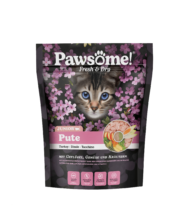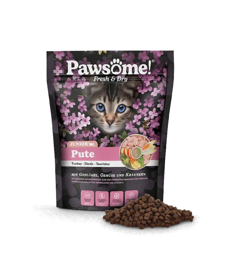 Με την Pawsome!® Fresh & Dry, κάθε γεύμα της γάτας σας γίνεται μια υγιεινή και απολαυστική εμπειρία! Η τροφή χωρίς δημητριακά δεν περιέχει καθόλου πρόσθετη ζάχαρη και προσφέρει μια διατροφή που βασίζεται σε υψηλής ποιότητας κρέας ή ψάρι, ακριβώς όπως πρέπει για τις ανάγκες των γατών. Οι τραγανές ποικιλίες περιέχουν απαραίτητα θρεπτικά συστατικά, όπως ταυρίνη και πρεβιοτική ινουλίνη, που βοηθούν στην καλή υγεία της γάτας σας. Επιπλέον, τα superfoods προσφέρουν μία επιπλέον ώθηση σε πολύτιμα θρεπτικά συστατικά.